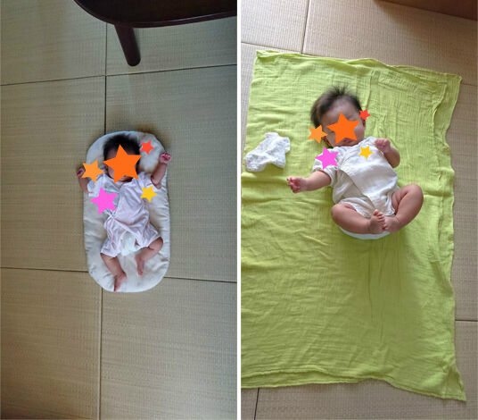 2~3か月の頃の娘。気持ちよさそうにねんねしたり、ゴロゴロしたり。
